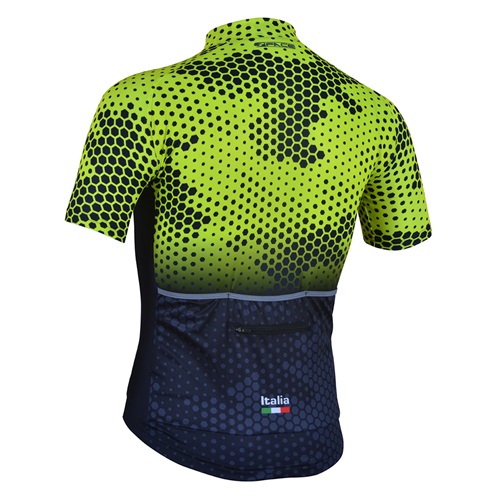Costruito con tessuti lycra 220grammi elastica e traspirante abbinato ad un taglio molto confortevole con una vestibilità aderente ma non troppo slim.