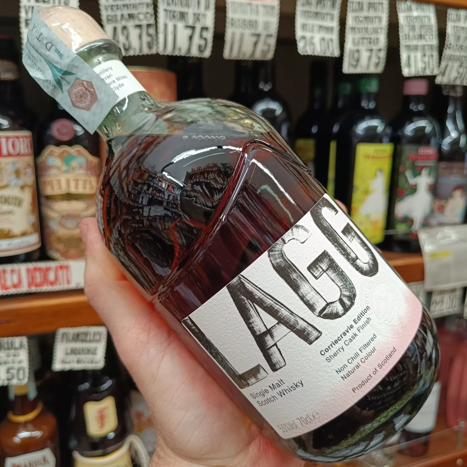 Al naso, Lagg Corriecravie sprigiona note di fumo di torba dolce, frutta secca, cioccolato fondente e spezie orientali, accompagnate da accenti di scorza d’arancia e legno tostato. In bocca è vellutato ma intenso, con una texture corposa che rivela caramello salato, frutta cotta, noce moscata e pepe nero, su una base affumicata persistente ma armoniosa. Il finale è lungo, caldo e leggermente tannico, con ritorni di torba e sherry.